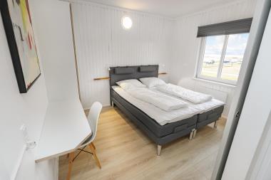 Lejligheden har egen privat indgang. Køkkenet har glaskeramisk komfur, køle/fryseskab med separat fryser på 10 liter. Hertil er der også et spisebord. Stuen byder også på komfort med hyggelige møbler og sofabord samt brændeovn. Fra stuen er der udgang til den sydvendte balkon. Herudover er der fladskærm med DR, TV2, tysk EUROSPORT1 og RTL. Der er to soveværelser med en dobbeltseng i hvert værelse. Badeværelset indeholder et brusebad, håndvask og toilet. Har man el-bil eller en Plug-In hybrid, så er der 4 Ladebokse til Type 2 ladestik, der kan lade op til 11 kWh ved Feriecenteret – de er lige efter miljøstationen.