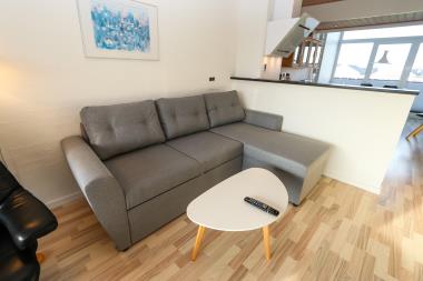 Lejligheden er beliggende på 1. sal. og er flot renoveret i lyse og venlige farver. Opholdsstuen er med danske kanaler og tysk RTL og Eurosport1, radio og lædermøbler. 1 soverum: (1DS) + hems med 2 sovemuligheder + 1 dobbeltsovesofa i stuen. Flot køkkenhjørne med spiseplads, keramisk kogeplade, indbygningsovn, emhætte, opvaskemaskine, mikroovn, spiseplads og varmepumpe. Lille badeværelse med gulvvarme, toilet, håndvask og bruser. Flot trægulv i alle opholdsrum. Udgang til overdækket altan med havemøbler. Har man el-bil eller en Plug-In hybrid, så er der 4 Ladebokse til Type 2 ladestik, der kan lade op til 11 kWh ved Feriecenteret – de er lige efter miljøstationen.
