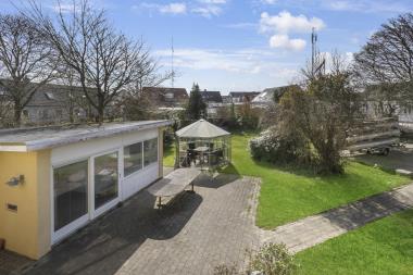 Huset ligger på en 1.180 m2 grund i Lemvig by og har et dejligt udeområde. Huset har blandt andet en altan med havemøbler der kan tilgås fra første sal, men er også tilgængelig udefra vha. en trappe. Desuden er der også en hyggelig pavillon og dejlig terrasse med havemøbler og der er en grill og en bålplads i haven. Her er der rig mulighed for at nyde en kop kaffe i solen eller samles til grillaften med familien.
