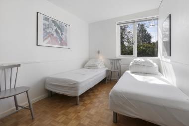 Tilbage i stueetagen befinder sig alle husets 8 soveværelser. Her er der fordelt 3 dobbeltsenge og 9 enkeltsenge på de forskellige værelser, der alle er stilrene og lyst indrettede.
