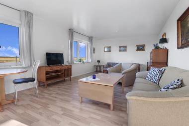Lejligheden er enkelt og praktisk indrettet. Køkken med spiseplads, glaskeramisk komfur, emhætte, opvaskemaskine og køleskab med fryseboks. Fra køkkenet er der adgang til et stort soveværelse (1DS). Opholdsstue med TV med tyske og danske kanaler og sovesofa (2 personer). Renoveret badeværelse med toilet, håndvask, bruser, vaskemaskine og klinkegulv. Hele lejligheden opvarmes af et nyt og bæredygtigt luf til vand anlæg.