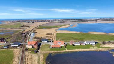 Fra den fælles fordeler gang er der udgang til en dejlig fælles terrasseanlæg med havemøbler og grill ligesom der er adgang til en mindre sø. Perfekt til en lille gåtur men som også gør at der er en flot udsigt fra lejlighedens køkken Det er nemt at komme en tur til Vesterhavet fra lejligheden. Under ferien kan et besøg i fiskerbyen Thyborøn eller handelsbyen Lemvig være et besøg værd, her er der et godt udvalg af indkøbsmuligheder, restauranter og seværdigheder.