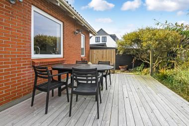 Husets grund ligger i et rolig område tæt på stranden og indkøb. Terrassen er udstyret med havemøbler til alle beboere i huset.