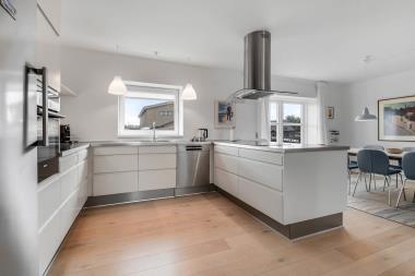 122 m2 stort helårshus med fjernvarme, gratis internetadgang og 65 m2 kælder. En funktionel entré byder velkommen og fører jer til husets forskellige etager. I stueplan ligger køkkenet og opholdsstuen. Køkkenet er veludstyret med et komfur med glaskeramiske kogeplader, emhætte, ovn, køleskab, mikroovn og opvaskemaskine. Opholdsstue med lædermøbler, Smart-tv, streaming, tysk, svensk og norske kanaler samt udgang til dejlig terrasse I niveau med havemøbler, 2 solvogne og grill. Terrassen og lille have med pavillon ligger mod øst/syd i læ for vestenvinden. Trappe til første sal med rummeligt badeværelse med bruseniche, toilet og håndvask samt 2 store soveværelser (1DS) (1 trekvart og 1ES). Trappen fortsætter til 2. sal, hvor der er et kombineret opholdsrum med biopejs og soveværelse (1DS) og flot udsigt til hav og klitterne ved Vesterhavet. Entre med trappe til kælderrum med fryser, vaskemaskine og tørretumbler og mulighed for at opbevare fiskegrej og surfudstyr. Rygning og husdyr er ikke tilladt.
