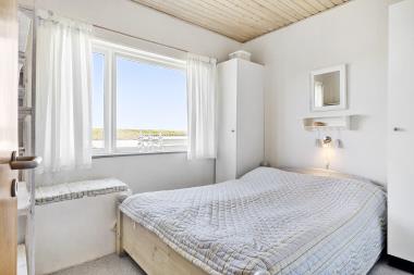 Når man træder ind i husets stueplan, bliver man mødt af en dejlig lys og indbydende indretning. Husets hjerterum og også største rum er den hyggelige stue. Stuen er indrettet med hjørnesofa, fjernsyn og skaber gode rammer for en familie eller par. Det næste rum i stueplanen er køkkenet, hvorfra man har den skønneste udsigt mod de maleriske klitter. I køkkenet er der alt hvad man skal bruge til en dejlig ferie ved vestkysten. Køkkenet er blandt andet udstyret med el-keramisk komfur, emhætte, opvaskemaskine og køleskab. I køkkenet er der derudover en lille hyggekrog, hvor man kan sidde på en bænk med en bog eller en god kop kaffe, mens den knitrende brændeovn varmer rummet op. På stueplanen ligger et af husets to badeværelser. Her er der toilet håndvask og en bruser. Ved siden af badeværelset i stueplanen ligger også et af fire hyggelige soverum. Her er der en dobbeltseng og også fra dette rum kan de skønne klitter ses. I kælderetagen ligger de tre andre soverum. Det ene er med en dobbeltseng, det andet er med en dobbeltseng og det tredje er med en enkeltseng. I kælderen er der desuden et vaskerum, hvor man kan vaske tøj i løbet af ferien hvis der er behov for det. Husets store badeværelse befinder sig også i kælderen, hvor der forefindes toilet, håndvask, brusekabine og også et badekar. Den lyse indretning i blå og hvid strækker sig gennem hele huset og giver en følelse af badehotelsstemning. Obligatorisk slutrengøring.
