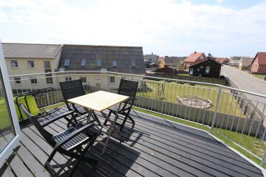 60m2 stor lejlighed på 1. sal som sammen med resten af huset er renoveret 2020. Fra Stuen og fra terrassen / balkonen er der pragtfuld udsigt til klitterne. Indgang gennem den fælles trappeopgang. Opholdsstue med lædermøbler, TV med tyske og danske kanaler, radio og spisebord. Køkken med komfur med glaskeramiske kogeplader, emhætte, opvaskemaskine og køleskab med fryseboks. 2 soveværelser: (1DS + 1 dobbelt sovesofa). Mindre badeværelse med klinkegulv, toilet, håndvask og bruser. Der er praktiske hårde gulve i hele lejligheden. Ikke ryger lejlighed. Husdyr ikke tilladt. Forbrugsomkostninger pr. uge 1.5.-31.10 kr. 400 fra 1.11.-30.4. kr. 600 pr uge. Har man el-bil eller en Plug-In hybrid, så er der ved huset et udevendigt stik (400V + 230V) med seperat afregning. Kontakt venligst SJ Feriehusudlejning før brug og seperat afregning.