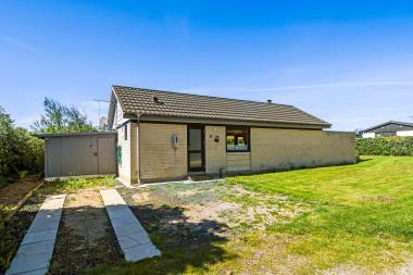Fra stuen er der udgang til en stor delvis overdækket terrasse med massere af mulighed for en finde en plads i solen. Den store overdækket del udgør næsten en hel udestue og selv på gråvejsdage en det er dejligt sted at opholde sig. Der er grill, solvogne og havemøbler Stor åben, velholdt grund med massere af mulighed for boldspil og andre sjove aktiviteter. Efter en gåtur på ca. 600 m nåes Limfjorden. Det rolige og lave vand virker beroligende på alle og der er mulighed for en dejlig gåtur eller måske en lille dukkert i det rolig vand. Et hus til en god pris som er nemt at overskue og perfekt til parret eller den mindre familie.