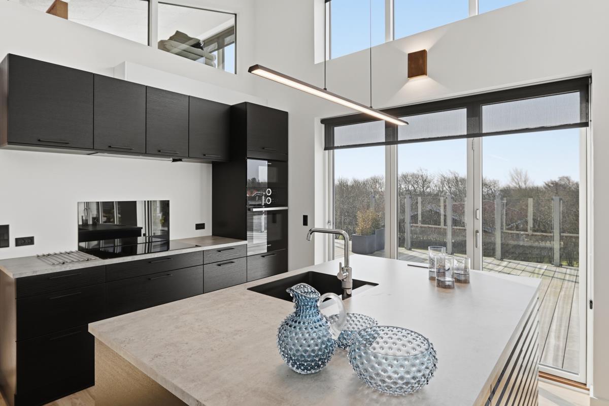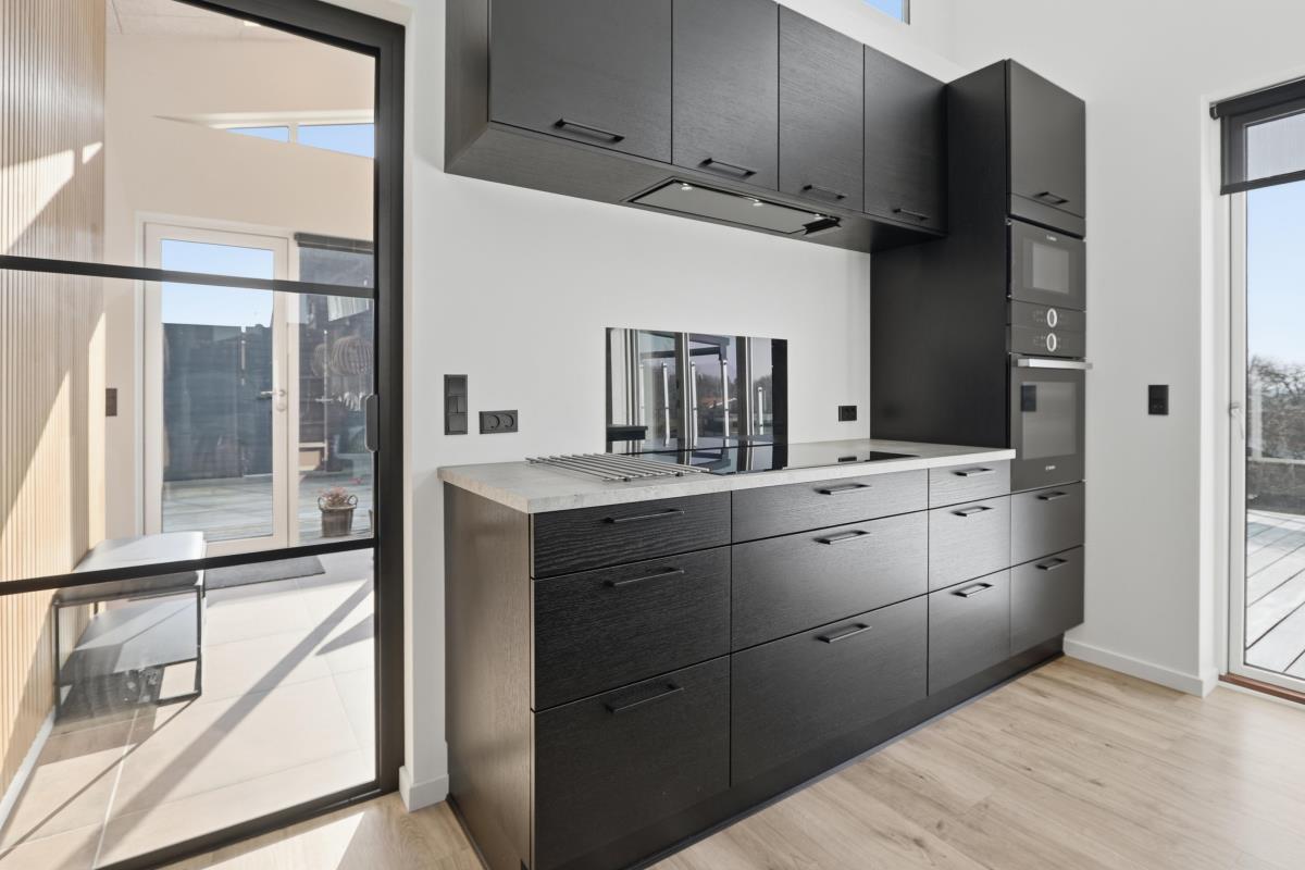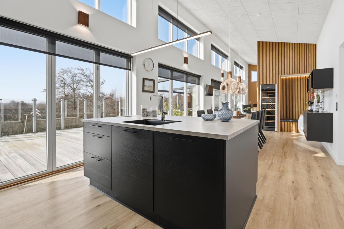 Køkkenet er moderne og funktionelt med ovn, mikroovn, keramiske kogeplader, kaffemaskine, stort køleskab og seperat stort fryseskab – alt, hvad I har brug for til feriens måltider og mere til.