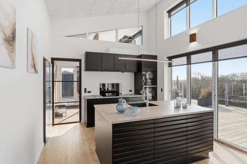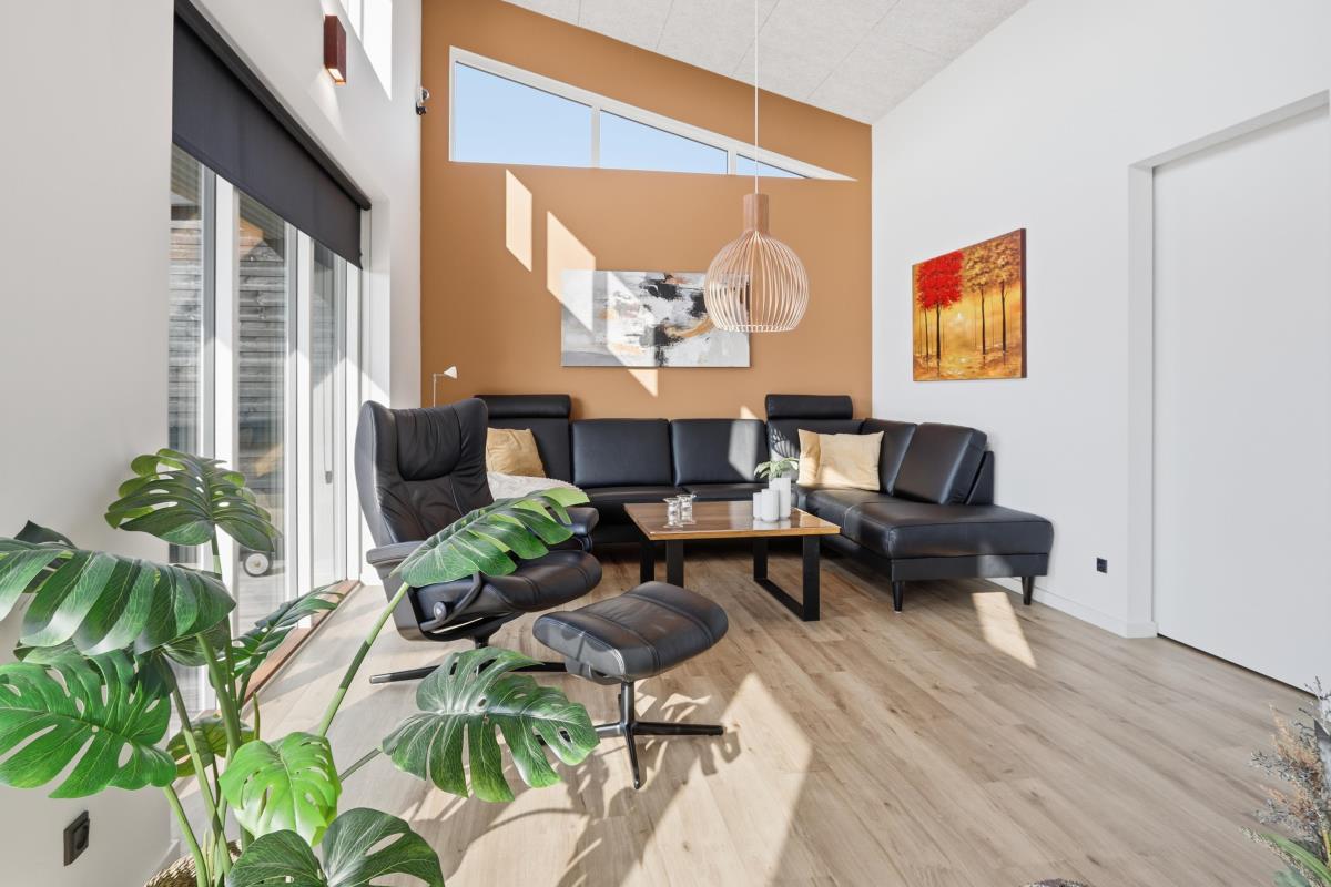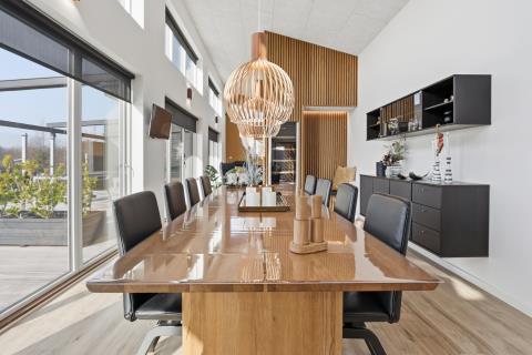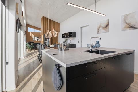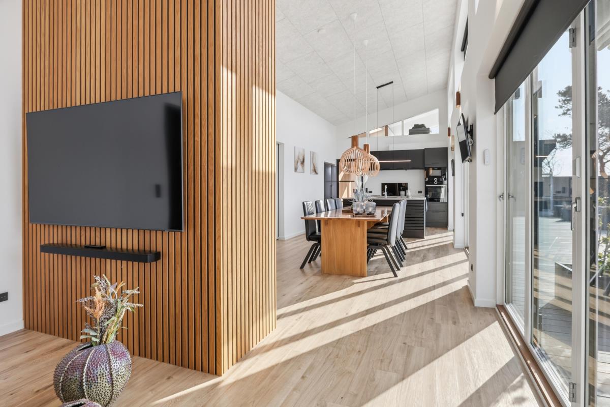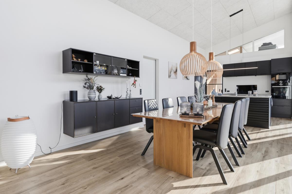 Det åbne opholdsrum har både spiseplads og samtalekøkken, og her er der plads til at være sammen – uanset om I spiller spil, ser film eller bare slapper af.