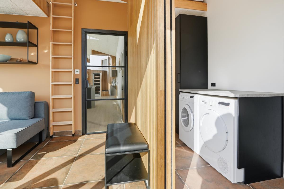Det er gulvvarme i hele huset, som drives af en energivenlig luft til vand varmepumpe, som hele året rundt sørge for, at huset har et minimalt forbrug, et perfekt indklima og en optimal komfort.
