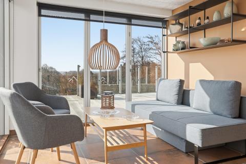 Den store, unikke sydvendte træterrasse er privat og giver mulighed for altid at finde læ. Der er sol fra tidlig morgen til sen aften – perfekt til morgenkaffe, solbadning eller aftensmad under åben himmel. Gode havemøbler, solvogne og chaiselonsofa som gør oplevelse perfekt.