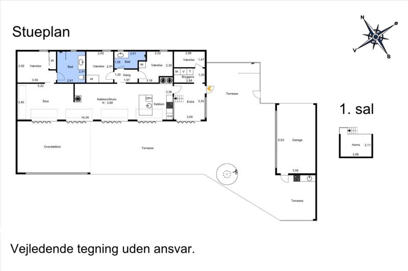 - Terrasse: Delvis overdækket