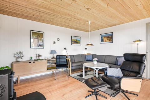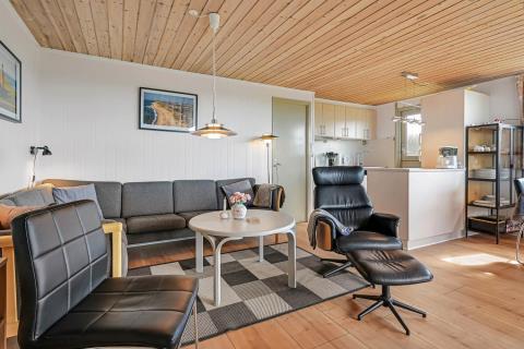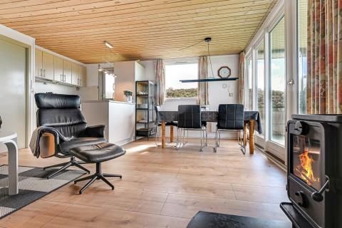 Træferiehus med gratis Internet og delvis udsigt over Vesterhavet. Beliggende i hyggelige og rolige Trans Ferieby kun 120m fra Vesterhavet.
