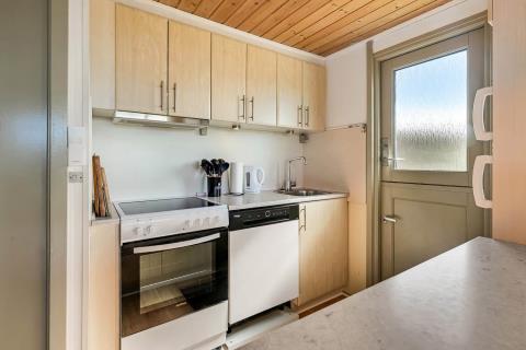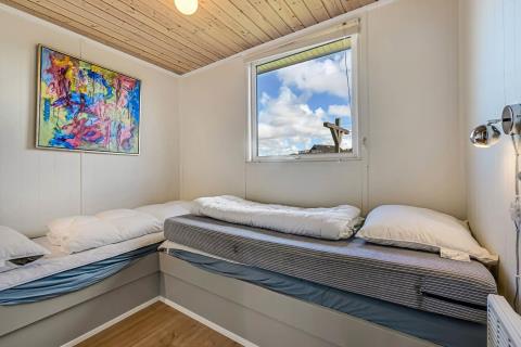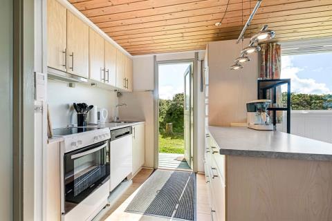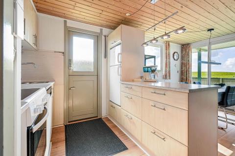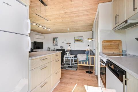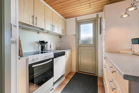 56 m2 træferiehus fra 1971 og renoveret i 2008. Vægge og lofter er i træ og der er 3 soveværelser (1DS, 2ES 1ES). Kombineret opholdsstue og køkkenhjørne. Lige på den anden side af køkkenhjørnet er spisebordet placeret. Opholdsstue med polstermøbler, tv med danske og tyske kanaler og cromecast til streaming, radio/CD og en dejlig brændeovn samt varmepumpe som skaber ekstra hygge og hjælper med at sparer på varmeregningen. Pænt køkkenhjørne med elektrisk komfur med keramiske kogeplader, emhætte, mikroovn, køleskab med fryseboks og opvaskemaskine. Ekstra fryser på 80L i køjerummet. Pænt badeværelse med toilet, bruser og håndvask. Der er linoleumsgulve i alle rum, som gør at huset er nemt at rengøre. Ikke ryger hus. Max 1 husdyr tilladt.