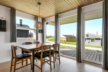 56 m2 træferiehus med 2 soveværelser (1DS, 1DS). Kombineret opholdsstue og køkkenhjørne. Lige på den anden side af køkkenhjørnet er spisebordet placeret. Herudover er der tv med danske og tyske kanaler samt mulighed for streaming af TV / radio / Apps. Opholdsstuen med lædermøbler og en varmepumpe som altid sørger for god varme en billig pris. Pænt køkkenhjørne med keramiske kogeplader, inbygningsovn, emhætte, køleskab med lille fryseboks, mikroovn, opvaskemaskine og udgang til terrasse. Pænt badeværelse med toilet, bruser, håndvask og klinkegulv med gulvvarme. Fra stuen er er kig til Vesterhavet. barnestol. Ikke ryger hus. Max 1. Husdyr tilladt.