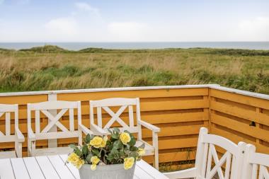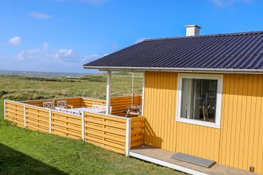 55 m2 træferiehus med 3 soveværelser (1DS, 1DS, 1KS). Kombineret opholdsstue og køkkenhjørne. Opholdsstue med læder- og polstermøbler, Smart-TV med danske og tyske programmer samt mulighed for streaming af TV / radio / Apps og spisebord. Nyd panorama udsigten over Vesterhavet og slap af foran den knitrende brændeovn. Pænt køkkenhjørne med keramiske kogeplader, indbygningsovn, emhætte, opvaskemaskine og køleskab med lille fryseboks. Pænt badeværelse med toilet, bruser og håndvask. Fra stuen er der panoramaudsigt til Vesterhavet. Der er trægulve i alle opholdsrum og soverum. Ikke ryger hus. Husdyr ikke tilladt.
