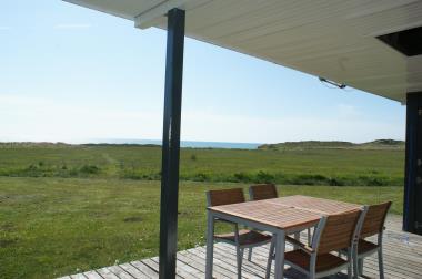 Velholdt feriehus beliggende i første række til Vesterhavet.Huset ligger på en 600 Kvm åben naurgrund i et feriehusområde kun ca. 70 m fra Vesterhavet. Huset er bygget i 1971 og renoveret i 2003 Væggene og lofterne er af træ. Gratis internetadgang. Køkken er kombineret med stuen og indeholder køleskab med fryser og opvaskemaskine. Stuen er udstyret med brændeovn, stereoanlæg og fjernsyn med parabolantenne (dog kun tyske kanaler). Badeværelse med brusenichie Huset har 3 soverum: 2 med dobbeltseng og 1 med 2 køjepladser. Desuden er der gynger, vaskemaskine og havemøbler. Terrasse hvor man kan nyde panoramaudsigten ud over Vesterhavet. Ny fælles legeplads lavet i 2012, hvor der findes legehus, rutschebane og bålplads.