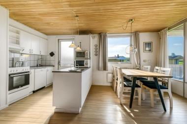 Hyggeligt feriehus med delvis havudsigt. Gratis internetadgang. Vægge og lofter af træ. Tæpper overalt. Hems med 2 sovepladser . 2 soverum: 1 med dobbeltseng og 1 med 2 køjepladser. Hems med 2 sovepladser. Stort badeværelse med gulvvarme, spa og bruser, vaskemaskine, tørretumbler. Huset ligger på en 700 kvm åben naturgrund i et feriehusumråde kun ca. 100 m fra vesterhavet. Lukket terrasse omgiver huset. Til børnene er der legeplads i nærheden. Es liegt in einem Ferienhausgebiet mit grossem, gemeinsamen Spielplatz (2012 erneuert) mit Spielhaus, Rutsche und Feuerplatz.