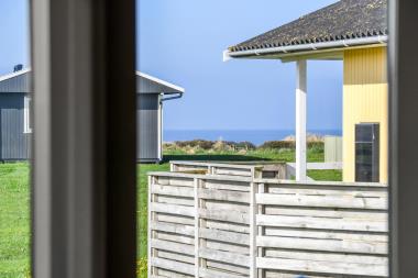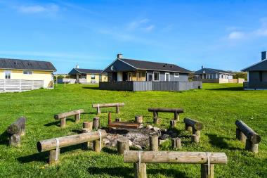 Udgang til delvis overdækket, indhegnet terrasse med massere af muligheder for at finde en plads i solen,  da der er terrasser båd foran, bagved og langs medhuset som alle er forbundet og indhegnet. Udgang til terrasseanlægget såvel fra køkkenhjørnet som fra opholdsstuen. Nyd også at husets 700 m2 åbne naturgrund grund ligger lige op til dejligt fællesareal med legeplads med bla. ruchebane og vippe og en hyggelig bålplads. Huset ligger kun 100m fra Vesterhavet. Hold kondien ved lige med en gåtur i det bakkede landskab eller gå en tur ved Vesterhavet som hver dag byder på en ny oplevelse. Hyggeligt og særdeles velholdt feriehus som danner den perfekte ramme om ferien i et unikt og rolig feriehusområde