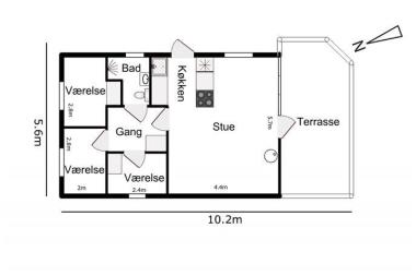 55 m2 træferiehus som er bygget i 1971 og delvis renoveret i 2015. 3 soveværelser (1DS, 1DS, 1KS). Kombineret opholdsstue og pænt, nyere køkkenhjørne. Lige på den anden side af køkkenhjørnet er spisebordet placeret. Herudover er der tv med danske og tyske kanaler, DVD/radio/CD. Varmepumpe og en dejlig brændeovn søger for en billig varmeregning og ekstra hygge. Pænt veludstyret køkkenhjørne med komfur med kogeplader og ovn, emhætte og køleskab med lille fryseboks. Flot badeværelse med toilet, bruser, håndvask, vaskemaskine og klinkegulv med gulvvarme. Fra stuen er er kig til Vesterhavet og klitterne. Der er trægulv i hele huset. Køle-/fryseskab i køjerummet. Ikke ryger hus. Max 1. husdyr tilladt.