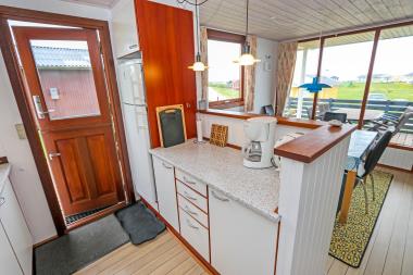56 m2 træferiehus med 3 soveværelser (1DS, 2ES 1KS). Kombineret opholdsstue og nyere køkkenhjørne. Lige på den anden side af køkkenhjørnet er spisebordet placeret. Herudover er der tv med Chromecast, samt mulighed for streaming af TV / radio / Apps via Chromecast. Så har du en mobiltelefon eller et andet device med kan du streame hvad du nu har abonnement, radio/CD og en dejlig brændeovn som skaber ekstra hygge og varme. Pænt køkkenhjørne med komfur med keramiske kogeplader, emhætte, og køleskab med lille fryseboks. Pænt badeværelse med toilet, bruser og håndvask. Fra stuen er er kig til Vesterhavet og klitterne. Der er trægulve i alle opholds- og soverum. Ikke ryger hus. 1 husdyr tilladt.