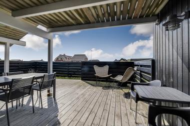Fra opholdsstuen er der direkte udgang til en dejlig vestvendt, delvis overdækket terrasse. Fra entréen er der er udgang til en helt fantastisk træterrasse med dejlig læafskærmning. Herudover er der en fantastisk balkon med udsigt til klitterne. Er unikt ude areal, hvor der er muligheder for at flytte rund på havemøbler og liggestole, og hvor der altid kan findes en lækrog og en plads i solen. Huset ligger på en 1.200m2 klitgrund. I gåafstand fra huset findes desuden boldbane og legeplads. Restaurant og købmand har sæsonåbnet og ligger ligeledes i gåafstand fra huset. Inden for 5 minutter i bil kan Harboøre med flere aktiviteter og indkøbsmuligheder nås. Så hvad enten I er til aktiv ferie eller total afslapning, danner dette dejlige feriehus en perfekt ramme både hvad angår hus, beliggenhed og omgivelser.