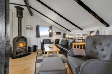 Stue og køkken er forbundet og herfra er der direkte adgang til den skønne store terrasse. I opholdsstuen er der brændeovn, Stereoanlæg med cd afspiller , samt 40″ Smart Tv med DR 1 , og chromecast samt sofamøblement samt spisebord. Væggene og lofterne er hvidmalede og beklædt med træ. Køkkenet er veludstyret med blandt andet opvaskemaskine, vaskemaskine, køleskab, 44 liter fryser og mikroovn. Herudover har huset et dejligt badeværelse med bruser, håndvask, toilet og opvarmet flisegulv. Der er to dobbeltsenge i huset fordelt på 2 gode soveværelser. Den ene har en dobbeltseng på 160 cm i bredden og den anden har en dobbeltseng på 140 cm i bredden. Der er trægulve i soverummene, trægulve med løse tæpper i køkken, stue og gang. Der er installeret varmepumpe i huset og det betyder at du som gæst kan spare en del på din elvarmeregning – varmepumpen leverer op til 4 gange så meget effekt som den bruger, det betyder at for hver kilowatt-time pumpen bruger yder den varme svarende til ca. 4 kW energien udnyttes dermed langt bedre. Et husdyr tilladt. Mulighed for forespørgsel ved 2 små hunde.