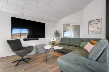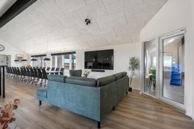 Der er masser af plads på den 3.555 m2 store grund og på det pragtfulde terrasseanlæg er der masser af muligheder for en plads i solen eller måske i skyggen, da anlægget bl.a. også indeholder et delvist overdækket areal. Der er tænkt på det meste. Stor gas grill, masser af havemøbler, loungesæt og liggestole. En frisk tur under den udendørs bruser og derefter en tur i den udendørs spa gør oplevelsen unik og specielt på de mørke aftener med den klare stjernehimmel. En unik oplevelse som er ren terapi for sjæl og krop efterfulgt af i den udendørs sauna. Så bliver det ikke meget bedre. Tag en tur til Vesterhavet, som hver dag fortæller en ny historie. Besøg de mange attraktioner og oplevelser, som nås indenfor max. 30 min. eller besøg fiskerbyen Thyborøn eller den dejlige handelsby Lemvig med masser af specialbutikker. I Sommermånederne kan de mest nødvendige indkøb klares hos købmanden i Vejlby Klit. Det perfekte rummelige hus til 26 personer beliggende i et unikt feriehusområde.