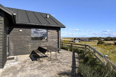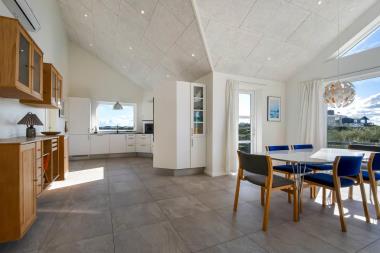 På en 1.250 m2 dejlig, kuperet naturgrund med en fantastisk udsigt til klitterne, og kun 200 m fra Vesterhavet, ligger dette pragtfulde feriehus på 124 m2. Huset er minimalistisk i sit udtryk og praktisk indrettet. En flot entrè indeholdende skabe, ektra håndvask samt vaskemaskine og tørretumbler byder velkommen. Køkken / alrummet er med loft til kip og klinkegulv med gulvvarme. Fra opholdsstuen er der udsigt til klitterne ved Vesterhavet og den er indrettet med smart-TV, med mulig for streaming af TV / radio / Apps, nye lædermøbler, og spisebord. Slap af foran den knitrende brændeovn som sammen med varmepumpen hjælper med at reducere udgiften til varmeregningen. Dejligt køkkenhjørne med pragtfuld udsigt over landskabet. Der er alt i service og køkkengrej, opvaskemaskine, keramisk kogeplade, indbygningsovn, emhætte, køleskab med fryseboks og mikroovn. Der er ovenlysvinduer, der sammen med højden i opholdstuen giver et fantastisk indeklima. Stort, lækkert badeværelse med bruseniche, håndvask, toilet, direkte adgang til sauna og klinkegulv med gulvvarme. Fra entréen er der adgang til et ekstra badeværelse med bruser, toilet, håndvask og klinkegulv med gulvvarme. Huset har 3 fine soveværelser med trægulve og skabe (1DS, 1DS, 1DS) – heraf en seng med ekstra længde (220 cm). Ydermere er der en hems til begejstring for børn og barnlige sjæle. Der er gratis trådløs internetadgang. I garagen aktiviteter tilrådighed som bordtennis, dart, bob samt siddepladser. Rygning er ikke tilladt. Husdyr må ikke medbringes.