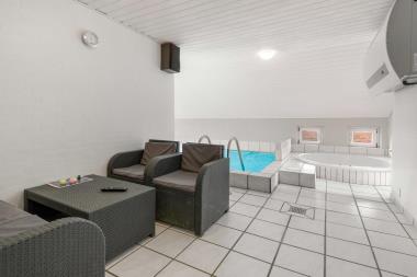 Huset er velindrettet og på 140 m2. Stuen er husets naturlige samlingspunkt efter man har fået dagens dukkert i poolen eller i havet. Her kan man sidde i sofagruppen og titte ind til poolen, nyde varmen fra brændeovnen eller se sin yndlingsserie på fladskærmen. Her er også CD-afspiller, radio og DVD-spiller. Der er gratis internet samt DR1 og TV2 samt tyske satellitkanaler. Det er endda muligt at nyde underholdning i poolrummet, da her også er fladskærm og højttalere samt sofagruppe samt et 4-personers spabad. Poolen måler 5,10 x 2,80 x 1,25 meter, som er udstyret med svømmetræner og undervandsbelysning. Fra poolrummet er der også direkte udgang til den sydvendte 45 m2 store gårdhave. Poolrummet har sit eget badeværelse med gulvvarme, sauna, bruser og håndvask. Køkkenet indeholder alt, hvad man har brug for: Glaskeramisk komfur, opvaskemaskine, køle-fryseskab og separat fryser på 100 liter. Varmepumpe til opvarmning af stue, køkken og gang. I entreen er der tilmed tørretumbler og vaskemaskine. Der er 4 store soveværelser bestående af 2 soveværelser med 1 dobbeltseng i hver samt 2 soveværelser med 2 enkeltsenge i hver. Børneseng og barnestol er i huset. Hertil kommer der nok et badeværelse med gulvvarme, bruser og toilet. Har man el-bil eller en Plug-In hybrid, så er der Ladeboks ved huset til Type 2 ladestik, der kan lade op til 11 kWh. Der er 2 hunde tilladt og ikke andre husdyr. Depositum vintersæson kr. 3000 og sommersæson kr. 2200