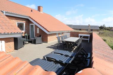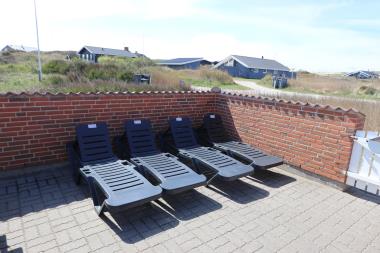 Der er hele 5 solvogne og havemøbler samt grill til huset. Disse kan man nyde på den enten 50 m2 store, sydvendte solgård eller på den østvendte terrasse. Herudover er der sandkasse og gynger til børnene. Udflugtsmuligheder er naturligvis Vesterhavet som ligger 250 meter fra boligen, ellers ligger havnebyerne Lemvig og Thyborøn cirka 15 km fra huset. Der er gratis adgang for alle beboere af feriehuse til Harboøre centeret,som ligger 5 km fra huset.
