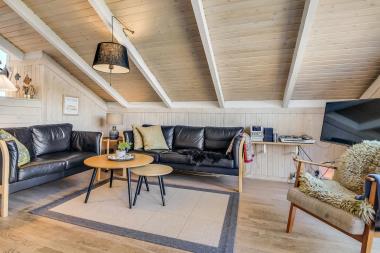 Dejligt beliggende fritidshus i klitområde tæt ved havet. Gratis internetadgang. Huset indeholder forsænket pejsestue kombineret med spisestue og køkken. Barnestol. Det er lyst og venligt indrettet med trægulv, med løse tæpper i stue, spiseafdeling og køkken og med pæne møbler. Køkken med microovn og opvaskemaskine. Stuen er udstyret med brændeovn, Stereoanlæg med CD, DVD og Parabolantenne dog kun med tyske kanaler. Badeværelse med bruser. 3 soverum: to med dobbeltsenge og en med 2 enkeltsenge. Bemærk separat indgang til et af soverummene. 3 terrasser med havemøbler og liggestole. Der er en varmepumpe i huset.