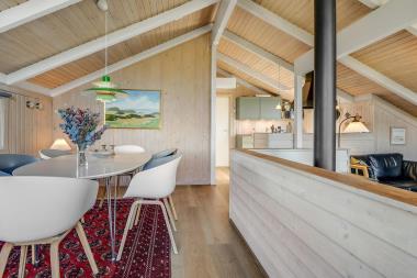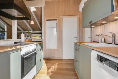 Parker lige ved huset og en flot fordelegang byder jer velkommen. Feriehuset er på ca. 84 m2 og har 3 nyrenoverede (2018) værelser (1DS, 1DS, 2ES). Fra forældre soveværelset er der pragtfuld udsigt til landskabet samt udgang til terrasse. Huset er praktisk indrettet i lyse og venlige farver og med pæne møbler. Et funktionelt og veludstyret køkkenhjørne med bla. opvaskemaskine, mikroovn og komfur med glaskeramiske kogeplader kombineret med spisestue og forsænket pejsestue med fladskærms-TV – med Apple tv, DR, TV2 og tyske programmer, DVD og CD afspiller, radio. Hyggelig brændeovn samt en energibesparende varmepumpe sørger for at alle kan holde varmen selv på de charmerende efterårsdage. Tag plads i en af husets behagelige stole og oplev, at blive betaget af den unikke udsigt til det høje klitlandskab. Dejligt badeværelse med vaskemaskine, bruseniche, toilet, og håndvask. Der er trægulve i alle sove- og opholdsrum og huset er meget rengøringsvenligt. Barnestol til de små. Ikke ryger hus. 1 husdyr tilladt. Har man el-bil eller en Plug-In hybrid, så er der Ladeboks ved huset til Type 2 ladestik, der kan lade op til 11 kWh.