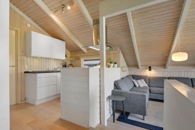 86 m2 stort, moderne træhus til max. 6 personer og med 4 soverum (1DS, 1DS, 1DS, 1ES). Opholdsstuen, som er forsænket i forhold til køkken og spiseafdeling, er med komfortable møbler og Smart-TV med digitalt TV og Chromecast så der mulighed for streaming af TV / radio / Apps, så har du en mobiltelefon eller et andet device med kan du streame hvad du nu har abonnement, radio/DVD/CD-afspiller. Sæt dig i sofaen og tænd op i brændeovnen og lyt til din yndlings-CD og brændeovnens knitren og nyd udsigten til klitterne. Godt indrettet køkkenafdeling med alle tænkelige hjælpemidler bl.a. opvaskemaskine, komfur med keramiske kogeplader, emhætte, mikroovn og køle-fryseskab. Køkkenet er kombineret med opholds-/spisestuen. Huset har installeret varmepumpe, som gør det energibesparende. Ekstra opbevaringsrum lige ved hovedindgangen. Badeværelse med bruser, toilet, håndvask og vaskemaskine samt gulvvarme. Barnestol.  Ikke ryger hus. Husdyr ikke tilladt