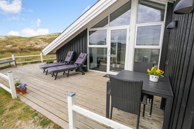 Fra huset er der udgang til en stor terrasse som omgiver det meste af huset, her kan man nyde solen og altid finde et sted med læ. Fra terrassen kan man høre havets brusen. Der er havemøbler, solvogne og grill til rådighed. Fra huset er der blot 20 m til den hvide sandstrand, så fra grunden er der direkte adgang til Vesterhavet. Her kan man gå lange ture og søge efter sten og rav eller ligge sig i en „gryde‟ og nyde solen og havet. Eller gå op og sætte sig i klitterne og nyde solnedgangen over Vesterhavet. Adgang til Harboøre Centeret.