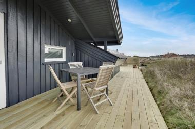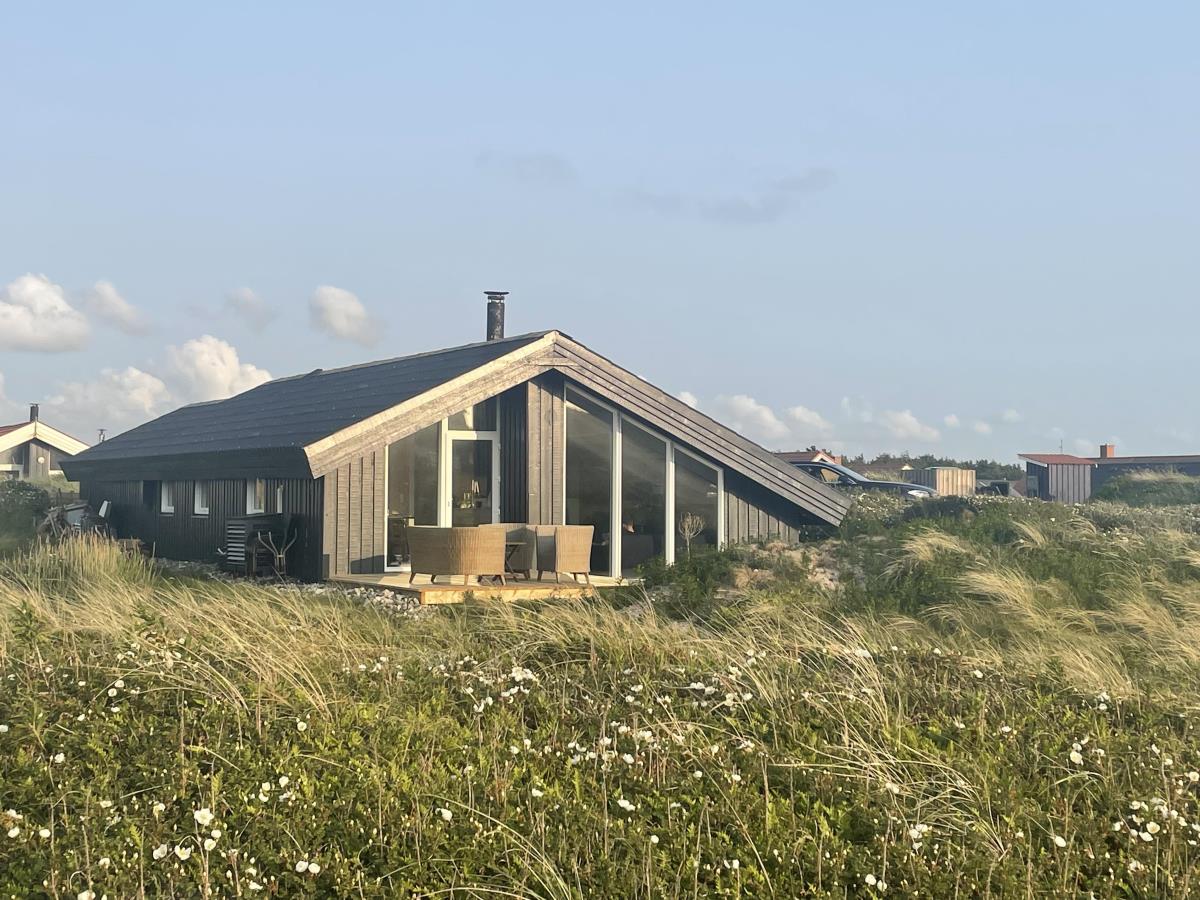 Huset ligger på en ca. 2.600 m2 stor klitgrund. Der er udgang til 3 dejlige terrasser som er forbundet med en dejlig flisebelagt gangsti. Terrassen med udgang fra køkkent er delvis overdækket. Der er havemøbler og solvogne til rådighed. Fra terrasserne kan man høre havets brusen. Nyd en gåtur ved Vesterhavet. Find sten og rav eller sæt jer i klitterne og nyd solnedgangen over havet.