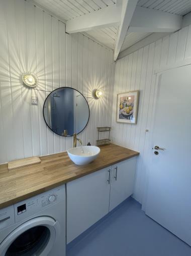 Godt indrettet 76 m2 stort træhus. Huset er bygget i 1978 og renoveret i 2024 således med nyt køkken og badeværelse. 3 soveværelser (1DS, 1DS, 2ES). En praktisk og lys entré byder jer velkommen. For enden af entréen træder man ind i huset helt nye køkken med induktionskogeplader og indbygget bordemhætte, indbygningsovn, opvaskemaskine og køleskab med fryseboks. Køkkenet er kombineret med opholds-/spisestuen. Opholdsstuen som er nedsænket i forhold til køkken og spiseafdeling er med lædermøbler og stofmøbler og en dejlig brændeovn. TV kun med tysk programmer. Danske tv-kanaler streames via chromecast, så har du en mobiltelefon eller et andet device med kan du streame, hvad du nu har af abonnement. Der er anlæg, hvor man ligeledes kan streame sin egen musik. Der er pergo trægulv i hele huset. Badeværelset er i mikrocement. Badeværelse med toilet, håndvask og bruser. Vaskemaskine. Husdyr ikke tilladt.