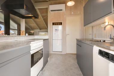 Godt indrettet 73 m2 stort træhus fra 1987. 3 soveværelser (1DS, 1DS, 2ES). En praktisk entré byder jer velkommen. For enden af entréen træder man ind i huset flotte, nye køkkenhjørne som komfur, emhætte, mikroovn, opvaskemaskine og køleskab med fryseboks. Køkkenet er kombineret med opholds-/spisestuen. Opholdsstuen som er forsænket i forhold til køkken og spiseafdeling er med lædermøbler, TV med danske og tyske programmer. En dejlig brændeovn og en varmepumpe sørger både for ekstra hygge og varmer dejlig på de lidt kolde dage. Der er gulvtæpper i opholdsstue, spisestue og i soverummene samt praktisk linoleum i køkkenet og badeværelse. Renoveret badeværelse med toilet, håndvask, bruser og vaskemaskine. Max. 1. Husdyr. Ikke rygerhus