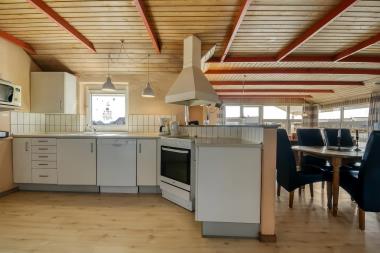 Dette murstensbyggede feriehus ligger på en 1800 kvm naturgrund kun 150 M fra Vesterhavet. Gratis internetadgang. Huset er personlig indrettet. Køkkenet er udstyret med alle moderne hjælpemidler og stuen er med farve-tv DR 1, parabol (dog kun med tyske kanaler) og stereoradio.Seperat fryser i skur. 2 dejlige badeværelser begge med toilet, håndvask og bruser og hvoraf det ene har en dejlig 2-personers whirlpool og direkte adgang til saunaen. 3 soveværelser: (dobbeltseng) + ( dobbeltseng) + (2 senge). Dejlig indhegnet gårdhave og delvis overdækkes terasse.