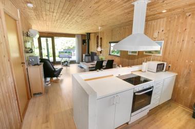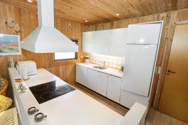 Her er 3 soveværelser hvoraf 2 er med dobbeltsenge og 1 er med 2 enkeltsenge. Der er et badeværelse med gulvvarme, brusebad, toilet og håndvask. Det er også herude vaskemaskinen står. Lige ved siden af er husets sauna. Stuen hænger sammen med køkkenet og køkkenet har både glaskeramisk komfur, mikrobølgeovn og køleskab med separat fryser på 24 liter. I stuen er der fladskærm med dansk tv og med parabol(tyske kanaler) samt DVD-afspiller. Når vinden rusker kan I tænde op i brændeovnen og sætte jer i sofagruppen. Stereoanlæg med CD giver flere facetter til at sikre hyggen. der er nye trægulve i hele huset.