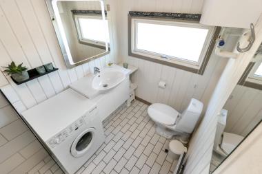 Kombineret køkken og stue med brændeovn, fladskærms-TV med DR 1 og TV2 samt parabol til de tyske kanaler. Køkkenet er veludstyret med bl.a. opvaskemaskine og mikroovn. 3 gode soverum med 1DS + 1DS + 2S. Til husets mindste gæster er der barneseng og barnestol. Badeværelse med håndvask, toilet, bruser og adgang til husets sauna, der er desuden gulvvarme på badeværelset. Ikke rygerhus og 1 husdyr er tilladt. Vaskemaskine.