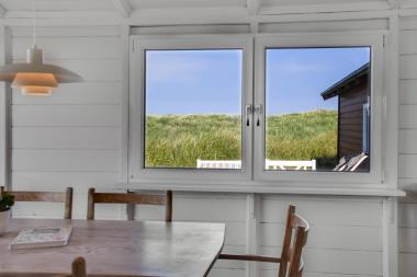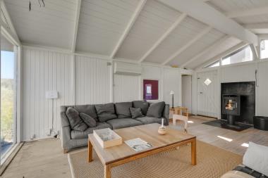 I 1. række til klitterne ligger dette hyggelige træhus og det har et af området bedste beliggenheder. Huset kan bedst beskrives som et rigtigt badehus i samme stil som et badehotel. Huset har en unik beliggenhed og har panorama udsigt fra både opholdsstuen og soveværelse til klitterne lige ved Vesterhavet. Fra huset er der direkte gangsti til Vesterhavet, som kun ligger cirka 100 meter fra huset.