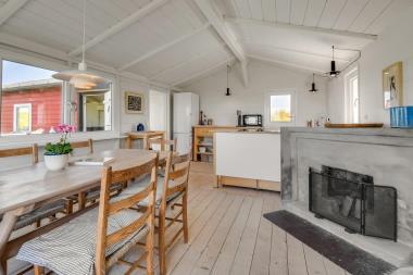 2 bygninger udgør dette unikke badehus som i alt er ca. 106 m2 stort. I hovedhuset tager en kombineret spisestue og åbent køkken imod. I køkkenet er der alt i service og køkkengrej, keramisk kogeplade med 4 zoner, bordovn og køleskab med fryseboks. Fra køkkenet går I gennem en lille fordeler gang ind i huset opholdsstue. Gennem de store panoramavinduer åbenbaret sig straks den unikke udsigt. Et fantastisk syn som ikke findes mange steder i området. Her kan I sidde i den dejlige sofa og nyde udsigt eller tænde op i den helt nyindstalleret brændeovn. Huset har også et stort smart-TV som hvor der er mulighed for streaming af TV / radio / Apps, så har du en mobiltelefon eller et andet device med kan du streame hvad du nu har abonnement til. TVét har ingen antenneadgang, men er forbundet via Internettet og kan derfor kun modtage programmer, som kan tages via Internettet, men kan derfor placeres i både opholdsstue og soveværelse efter behag. Fra stuen er der adgang til et stort, fantastisk master-bedroom (1DS). Herfra er der en lige så betagende udsigt samt en dejlig stor dobbeltseng. Det er en helt speciel oplevelse at vågne op til den fantastiske udsigt. Lille badeværelse med toilet, bruser og håndvask. Ikke ryger hus. Husdyr ikke tilladt