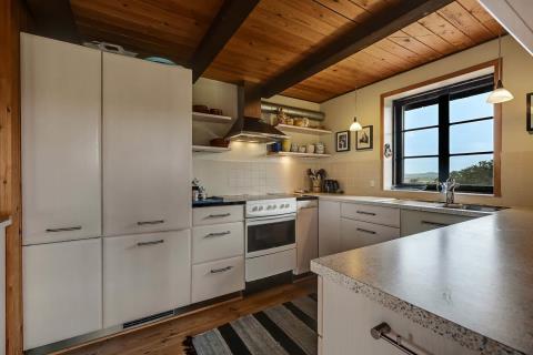 Huset ligger på en 4000 m2 stor naturgrund, med flot udsigt over området og til klitterne ved det brusende hav. Huset er omringet af en delvis overdækket terrasse med havemøbler og grill, som man kan flytte efter behov. I Vejlby Klit er der mange muligheder for aktiviteter. Man kan gå en tur langs stranden, som kun er få hundrede meter fra huset, samle sten og muslinger, bygge sandslotte, flyve med drage, cykle, fiske og så meget mere. Ikke langt fra Vejlby Klit kommer man i bil eller med det lokale VLTJ-tog hurtigt til havnebyerne Lemvig og Thyborøn, hvor man kan nyde en is på havnen, købe frisk fisk eller shoppe i de lokale butikker. Tager man VLTJ-toget, har man mulighed for at få gratis-billetter, som gælder hele ferien. Feriehuset er ideelt til familie eller par, som ønsker at få Vesterhavsluft blæst om ørene og nyde en pause fra den travle hverdag.
