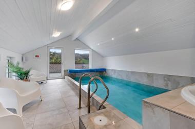 Huset har fire gode soveværelser (2 med dobbeltsenge, 1 med køjeseng, 1 med enkeltsenge), to badeværelser og et fantastisk poolområde. Her finder I en 5,5 x 3 m stor pool, spabad med plads til 4 personer, sauna og endnu et badeværelse – alt sammen med gulvvarme og energieffektivt luft-til-vand anlæg. Bluetooth-højtalere og ekstra TV gør pooltiden endnu mere underholdende.