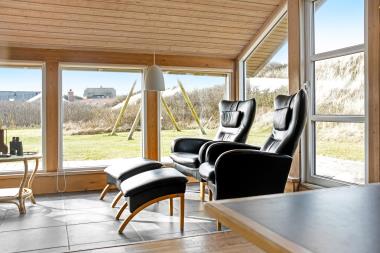 Skønt sommerhus bygget i træ i 1989. Huset ligger på en 1500 kvadratmeter stor uforstyrret klitgrund kun 90 meter fra Vesterhavet. Huset er igennem dens levetid løbende blevet renoveret. Gratis internetadgang. Til huset hører en skøn sydvendt terrasse med havemøbler. Indenfor er der delvist flisegulv og delvist parketgulv. Skønt badeværelse med brusebad, varme i gulvet og direkte adgang til saunaen. Til køkkenet hører opvaskemaskine, mikrobølgeovn og et lille fryseskab. I stuen er der kamin som giver en dejlig varme. farve-tv med parabol(dog kun tyske programmer på parabolen) samt mulighed for streaming af TV / radio / Apps via Chromecast. Så har du en mobiltelefon eller et andet device med kan du streame hvad du nu har abonnement.. 3 soveværelser: (DS) + (2ES) +(2K). Derudover er der vaskemaskine til rådighed. Husdyr er ikke tilladt. Et godt feriemål for hele familien.