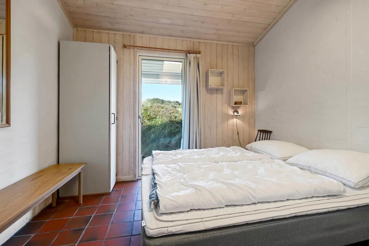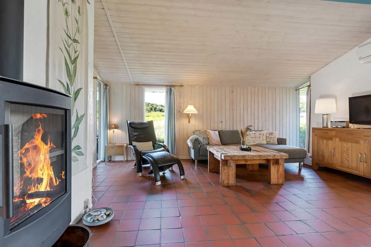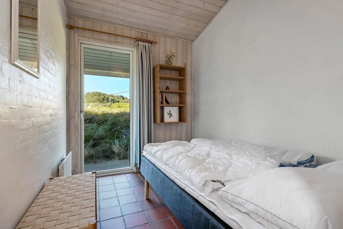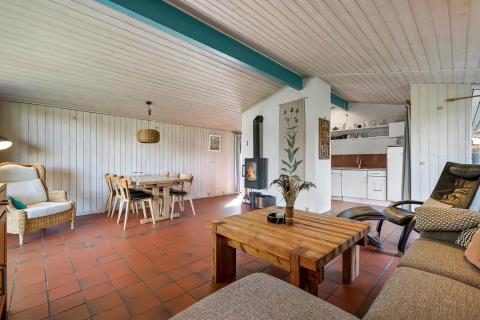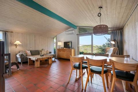 Godt udnyttet feriehus på ca. 90 m2 med 3 soveværelser (1DS, 1ES, 1ES-120×200). Fra opholdsstuen og fra alle soveværelser er der panoramaudsigt til de høje klitter ved Vesterhavet. Huset blev senest renoveret i 2013 og er indrettet med polstermøbler, spiseplads, TV med danske og tyske programmer samt Chromecast som giver mulighed for streaming af TV / radio / Apps og DVD-afspiller. En hyggelig brændeovn samt varmepumpe søger for en billigere el-regning og ekstra hygge samt varme til de rå dage ved Vesterhavet. Praktisk køkkenhjørne med bl.a. opvaskemaskine, keramisk kogeplade, indbygningsovn, emhætte samt køleskab med fryseboks. Dejligt badeværelset med toilet, håndvask, bruseniche og klinkegulv med gulvvarme samt vaskemaskine. Der er praktiske klinkegulve med gulvvarme i hele huset. Husdyr ikke tilladt. Ikke ryger hus.