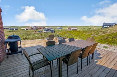 Huset er beliggende på en ca. 3.300 m2 stor kuperet, naturgrund kun 200 m fra Vesterhavet. Der er udgang til et dejligt nyanlagt terrasseanlæg. Havemøbler, solvogne og gasgrill som kan flyttes rundt efter behag. Der masser af muligheder for at nyde den fantastiske udsigt samt få en plads i solen. Gynger til børnene. Et utrolig dejligt hus, hvor der er tænkt på det meste og med masser af muligheder. Den flotte og praktiske modernisering gør huset ganske unikt. 5 – 10 min fra huset ligger Vesterhavet, der altid inviterer til en frisk gå- eller løbetur. Områdets købmand har sæsonåbent og ligger ca. 1.500 m fra huset og som i sæsonen byder på frisk morgenbrød. Her kan de daglige indkøb også klares. Også området madsted ligger ca. 1.500 fra huset. Indenfor 25-30 minutter kan flere aktiviteter og shoppingmuligheder nås. Så hvad enten I er til aktiv ferie eller total afslapning, danner dette flotte, moderniseret feriehus en perfekt ramme både hvad angår hus, beliggenhed og omgivelser.