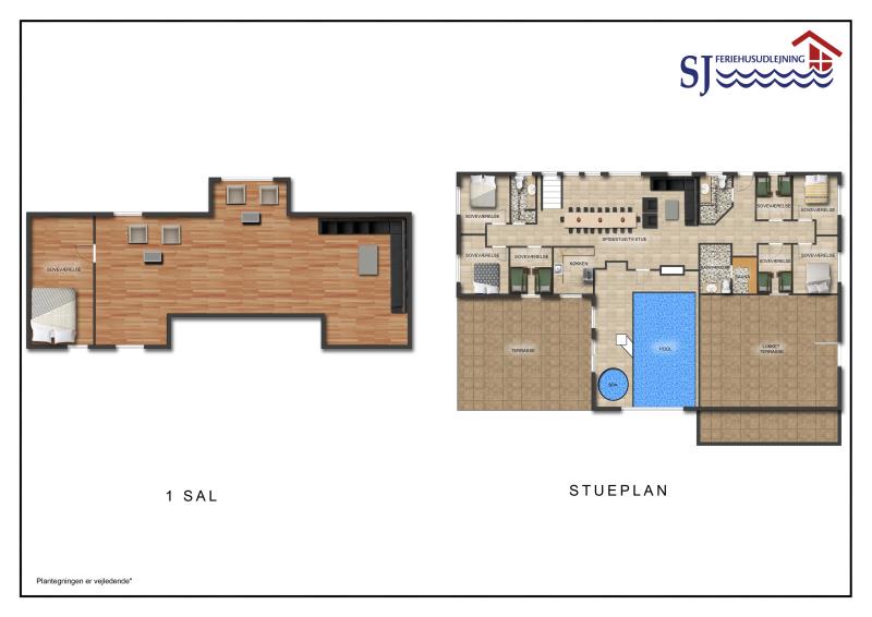 Et af husets helt store højdepunkter er den overdådige poolafdeling. Her venter jer en skøn swimmingpool med både modstrømsanlæg og rutsjebane, stort spabad og adgang til sauna – alt designet til afslapning, forkælelse og leg for hele familien. Fra poolområdet er der direkte udgang til det eksklusive terrasseanlæg, som nærmest fungerer som en privat oase med flere lækroge og solterrasser.
