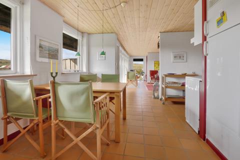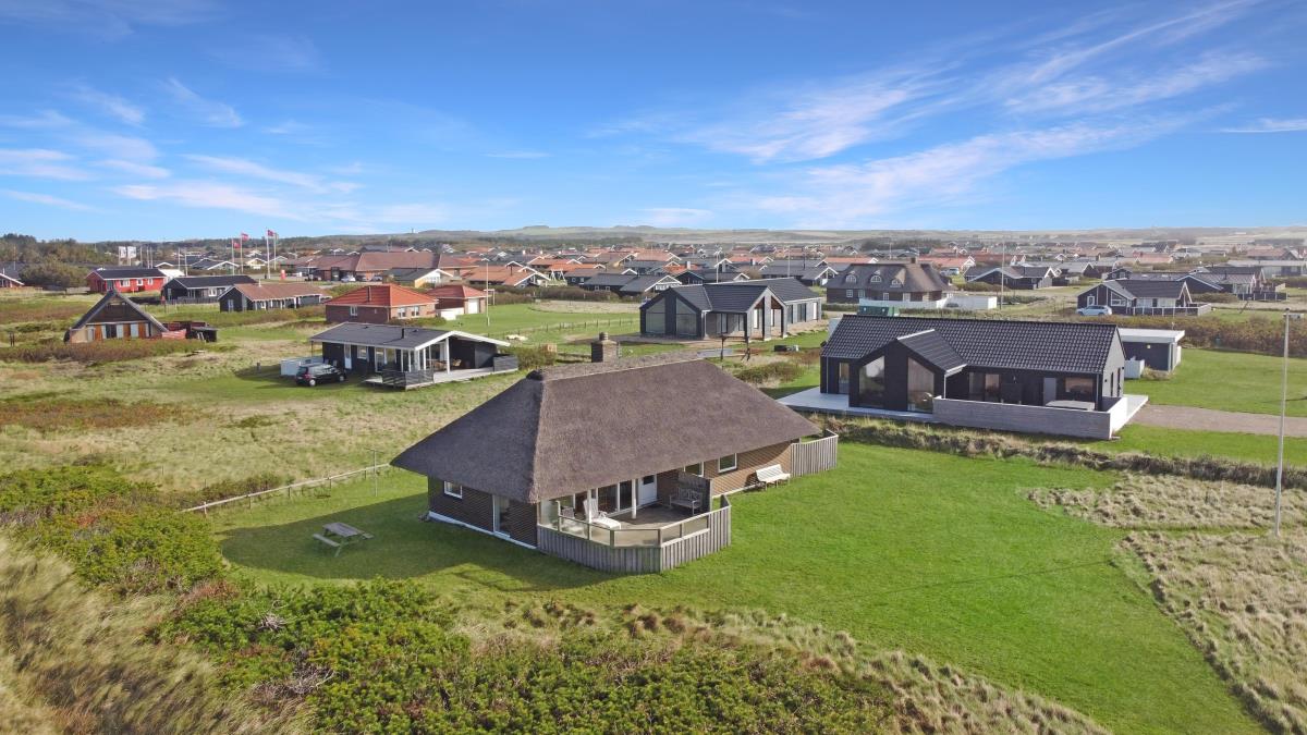 Das Haus befindet sich auf einem 2536 m² großen Naturgrundstück und liegt nur 200 Meter von der Nordsee entfernt. Es gibt eine schöne, teilweise überdachte Terrasse mit Gartenmöbeln, Sonnenliegen und Grill. Hier ist man gut vor dem Wind geschützt, sodass man das Leben im Freien das ganze Jahr über genießen kann. Vejlby Klit ist ein fantastisches Gebiet, das sich ideal für Wander- und Radtouren eignet. Wer etwas mehr als nur die raue Natur erleben möchte, findet in der Hafenstadt Thyborøn und der alten Handelsstadt Lemvig lohnende Ausflugsziele – beide sind nur eine kurze Autofahrt vom Haus entfernt. In beiden Städten gibt es zahlreiche Aktivitäten und Sehenswürdigkeiten sowie Einkaufsmöglichkeiten und Restaurants.